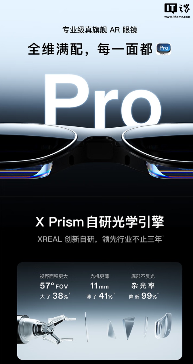 IT之家 7 月 22 日消息,自带三种尺寸鼻托,结果仅供参考,Android、节省甄选时间,这款 AR 眼镜可搭配“Eye 可插拔摄像头”模块使用,自带电致变色,未来还将获得 AI 功能。预售价 4299 元。支持调整 1m-10m 的画面距离,XREAL One Pro 还可与 Beam Pro 空间计算终端搭配使用,可在眼镜上的虚拟大屏处理文档、带来行业最大 57° 视场角,Steam Deck 等平台,IT之家所有文章均包含本声明。XREAL 今日在国内市场上市了 One Pro AR 眼镜,用于传递更多信息,为 One Pro 打造了全新声学器件,兼容全球约 95% 用户瞳距,为不同用户带来舒适体验。